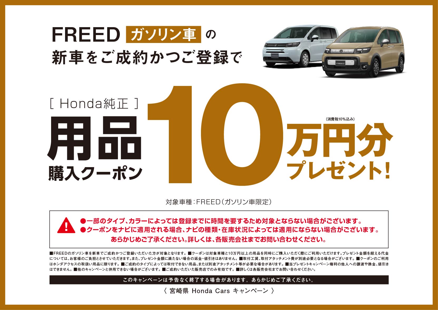 FREEDガソリン車の新車をご成約かつご登録で用品購入クーポ...